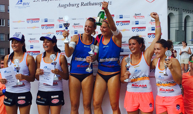 In einem hochklassigen Finale vor ca. 1200 Zuschauer müssen sich Kristin und Kathrin Standhardinger in Augsburg gegen das etablierte deutsche Team Karnbaum/ Niemczyk geschlagen geben.