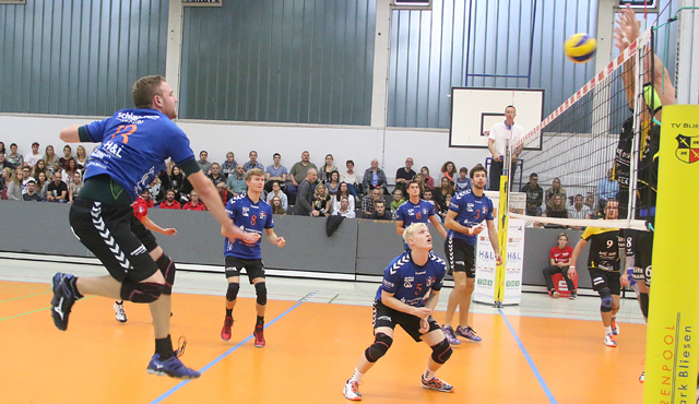 Die Spieler des hessischen Teams aus dem Landkreis Groß-Gerau feierten im vergangenen Jahr die Vizemeisterschaft in der höheren 2. Bundesliga Süd und sicherten dem Verein sogar das Aufstiegsrecht in die 1. Bundesliga. Diesen Aufstieg nahm der Verein wahr, stellte entsprechend der sportlichen Anforderungen der höchsten deutschen Spielklasse ein Profi-Team zusammen und geht dort als "United Volleys RheinMain" an den Start - und das mit dem ehemaligen Bliesener Jugendspieler Moritz Reichert, der erfolgreich im Außenangriff agiert. Für die Teilzeitvolleyballer" der TG mit gutem Zweitliganiveau heißt seit dem das Ziel in der 3. Liga nun Wiederaufstieg, der nach einem beispiellosen Saisonverlauf in guter Reichweite ist.