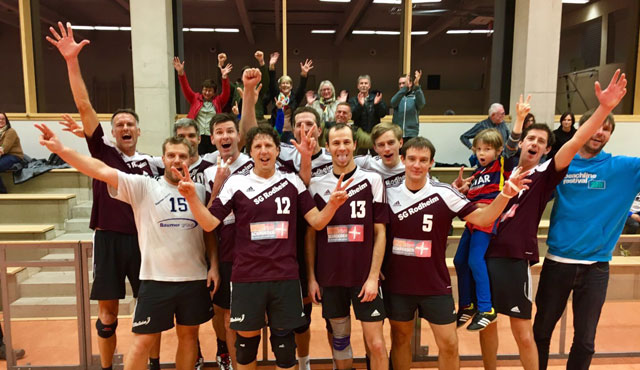 Der Tiebreak setze dem Krimi die Krone auf. Die beiden Topangreifer des Abends, Voeske und Merkel, duellierten sich regelrecht mit ihren Angriffsleistungen. Rodheim zeigte sich endlich auch in der Abwehr hellwach. Es entwickelte sich ein offener Schlagabtausch, die Zuschauer hielt es kaum noch auf den Sitzen. Tragischer Höhepunkt, die erneute Verletzung von Breitenfelder, welcher am Samstag gegen Bliesen, nach fast 1-jähriger Verletzungspause, sein Comeback vor heimischer Kulisse feierte. Mitten im Ballwechsel liegt er schon auf dem Boden, rappelt sich aber wieder auf, vollzieht mit schmerzverzerrtem Gesicht zwei weitere Angriffe und holte seinem Team noch einen wichtigen Punkt zum 12:11, ehe er durch Moritz Sachs ersetzt werden musste. Jetzt erst Recht, dachten sich die Rodheimer und schalteten noch einen Gang höher. Konzentriert ließen sie nichts mehr zu und beendeten den Krimi nach rund zwei Stunden mit 15:11.
