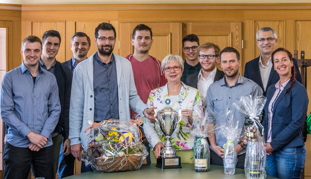 Leuna. Am Montag, 24.04.2017, ehrte die Bürgermeisterin der Stadt Leuna Frau Dr. Dietlind Hagenau in einer Feierstunde den Chemie Volley Mitteldeutschland, der in diesem Jahr die Meisterschaft in der 2. Volleyball Bundesliga Nord erringen konnte.