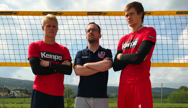Gemeinsam mit Coach Jan Kahlenbach starten Georg und Peter Wolf am Freitag in die neue Beachvolleyball-Saison (Foto: United Volleys)