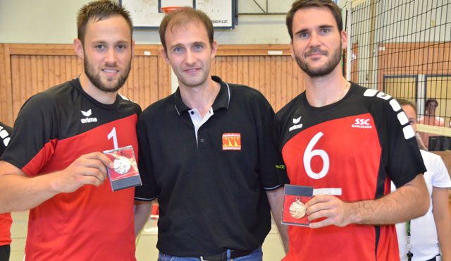 NVV Pokalfinale 2016 MVP-Ehrung li Thomas Fürst (SSC Karlsruhe 2)- re Marko Kienast (SSC Karlsruhe 1), Mitte: Joachim Greiner (Spielwart NVV) (Foto: SSC Karlsruhe)
