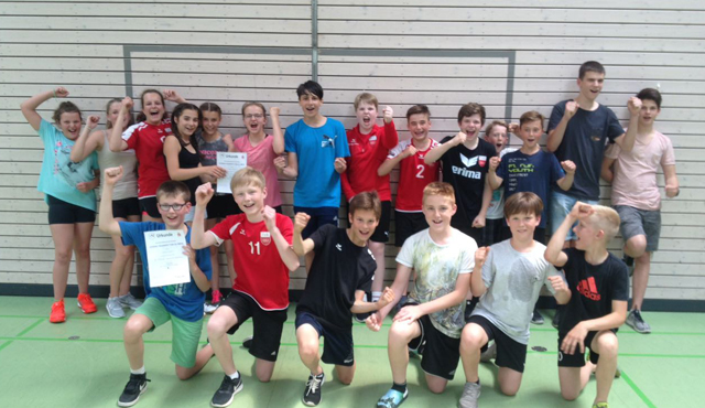 Das St. Meinrad Gymnasium Rottenburg unterlag dabei im Halbfinale nur denkbar knapp dem Jungs vom Stützpunkt-Gymnasium Graf Zeppelin aus Friedrichshafen und wurden am Ende Vierter. Die EBG-Jungs von Niko Schneider setzen sich im Finale dann deutlich gegen Friedrichshafen durch. Die EBG-Mädchen mit ihrem Coach Gordon Eske ließen sich das nicht zweimal sagen und machten klar, dass auch sie das beste Team im Regierungspräsidium Tübingen sein wollten. In den Spielen gegen Markdorf und Wilhelmsdorf setzten sie sich durch und konnten sich am Ende die Goldmedaille überhängen. Erstmals seit längerer Zeit werden somit Jungs und Mädchen des EBGs gemeinsam im Landesfinale Baden-Württemberg stehen. Mitte Juli werden dann die Sieger und somit die Teilnehmer am Bundesfinale ausgespielt. Die beiden hauptverantwortlichen Jugendtrainer für den Kleinfeldbereich im Rottenburger Volleyballprojekt, Niko Schneider und Gordon Eske, waren entsprechend glücklich mit dem erfolgreichen Spiel der Jungen und Mädchen, die sie auch im Verein betreuen. Ohne Zweifel ist dieser Erfolg auch Ausdruck der langjährigen Kooperation des TV Rottenburg mit den Rottenburger Schulen.