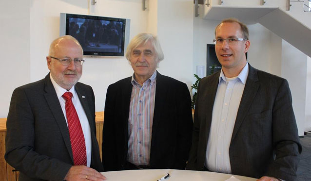 Hans-Dieter Wankmüller (Präsident Südbadischer Volleyball-Verband), Harald Schoch (Präsident Nordbadischer Volleyball-Verband) und Daniel Sattler (Geschäftsführer Volleyball IT GmbH) (Bild: Volleyball IT GmbH)
