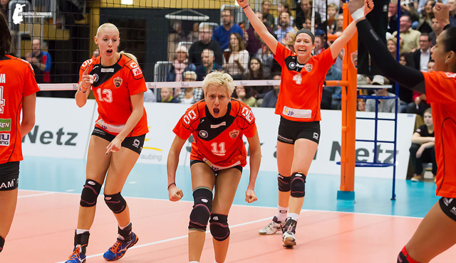 Im zweiten Satz lief NawaRo lange einem Rückstand hinterher. Diesmal kamen zum Satzende aber die Aufschläge Satzende und der Block um Straubings Mittelblockerin Wivian Gadelha stand immer öfter richtig. Nach einem Ass von Laura Weihenmaier war der Satzausgleich geschafft.