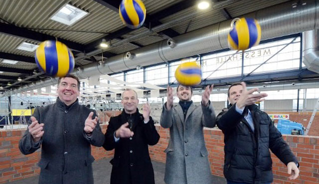 Der 50-Jährige verrät: "Wir führen bereits Gespräche mit der Messe Husum, die bislang als Heimat für Aussteller der Windindustrie bekannt ist. Der Plan ist: Die Messehalle soll sich für unsere Heimspiele in eine multifunktionale Volleyball-Arena verwandeln."