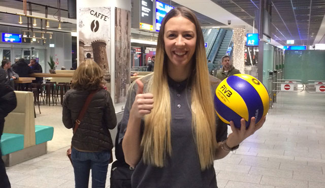 Vor dem ersten Training: Tanja Sredic bei ihrer Ankunft am Frankfurter Flughafen (Foto: VCW)