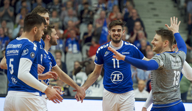 Der VfB Friedrichshafen steht im Finale um die Meisterschaft in der 1. Volleyball Bundesliga. Die Häfler gewannen bei den Hypo Tirol AlpenVolleys Haching mit 3:0 (25:20, 25:20, 25:15) und sicherten sich nach dem Hinspielerfolg am vergangenen Sonntag die best-of-three-Serie mit 2:0. Deutlich frischer wirkende Häfler dominierten Haching in allen Disziplinen und hatten vor allem mit einem starken Block am Ende deutlich die Nase vorn. Igor Grobelny und Simon Tischer wurden von den Trainern als beste Spieler ausgezeichnet. Gegner der Häfler im Finale werden die Berlin Recycling Volleys sein. Sie setzten sich ebenfalls mit 2:0 Siegen in ihrem Halbfinale gegen die United Volleys Rhein-Main durch.