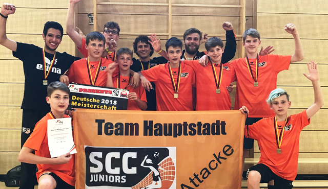 Zum Abschluss der Hallensaison rundete die U14 der SCC JUNIORS ein glänzendes Gesamt-Berliner Ergebnis im Jahr 2018 ab: Durch den Gewinn von Bronze bei den Deutschen Meisterschaften sammelte die Hauptstadt bei den nationalen Titelkämpfen jeder (!) Altersklasse eine der begehrten Medaillen ein. SCC JUNIORS Chef- und Sichtungstrainer Torsten Manke musste sich mit seinem SCC JUNIORS Team erst im Halbfinale gegen den späteren Sieger aus Rottenburg geschlagen geben. Der verdiente Lohn war Edelmetall.