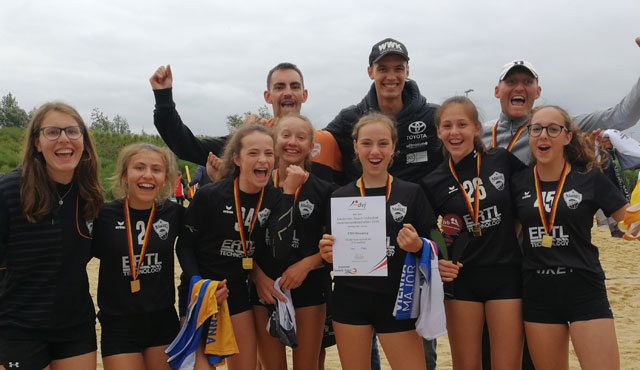 Die U15 des FTSV Straubing hat sich bei der Deutschen Vereinsmeisterschaft im Beachvolleyball den Titel geholt. Die Goldmedaille wurde den Straubinger Mädels am Sonntagnachmittag in Hamburg von Vizeweltmeister Julius Thole überreicht.