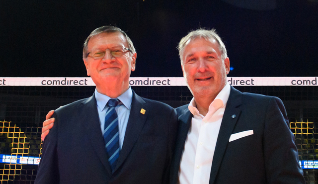 Aleksandar Bori?i?, Präsident der CEV, und Michael Evers, Präsident der Volleyball Bundesliga (Foto: Conny Kurth)