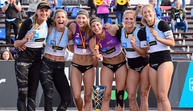 Das Treppchen 2020 v.l.n.r.: Kozuch/Ludwig, Ittlinger/Laboureur sowie Behrens/Tillamnn (Foto: Conny Kurth / DVV)