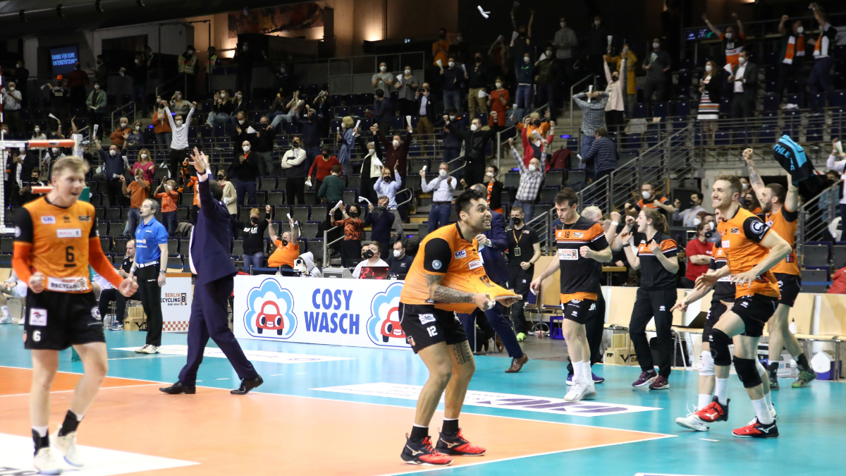 Es wurde das erhoffte Volleyballfest! Vor 1.000 Teilnehmenden lieferten sich die BR Volleys und die SWD powervolleys Düren ein umkämpftes Duell - mit dem besseren Ende für die Gastgeber aus Berlin. Der Hauptstadtclub setzte sich mit 3:1 (25:22, 25:20, 24:26, 29:27) durch und glich die "best-of-three"-Serie aus. Welches Team in das Endspiel um die Deutsche Meisterschaft einzieht, entscheidet sich damit am Samstag (27. Mrz um 19:30 Uhr) in Düren.