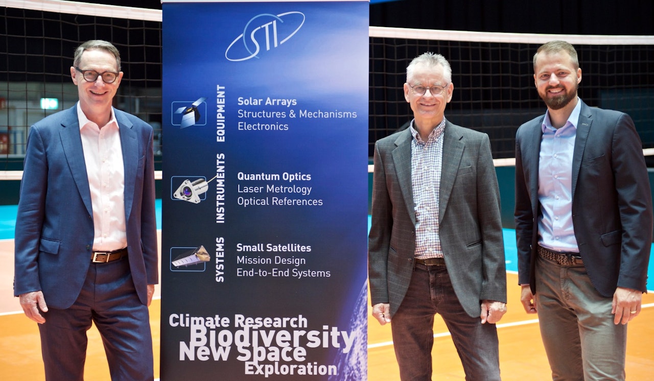SpaceTech GmbH-Geschäftsführer Wolfgang Pitz und Frank Gilles mit Thilo Späth-Westerhol